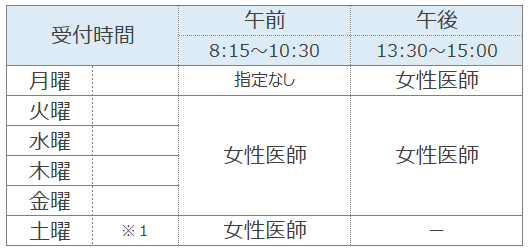 女性医師をご希望の場合は、最新スケジュールをご確認の上、ご予約時にお申し出ください